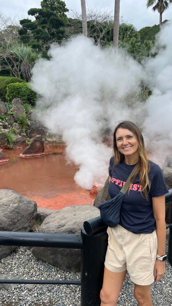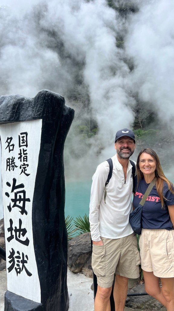 After the healthy start we decided to continue with the theme and hired electric bikes to go and see the Hell Tour (hot springs), with our first stop being the most famous known as The “Sea Hell” (Umi Jigoku) due to its vibrant blue-coloured water. The water is 98c and is often used to boil eggs.