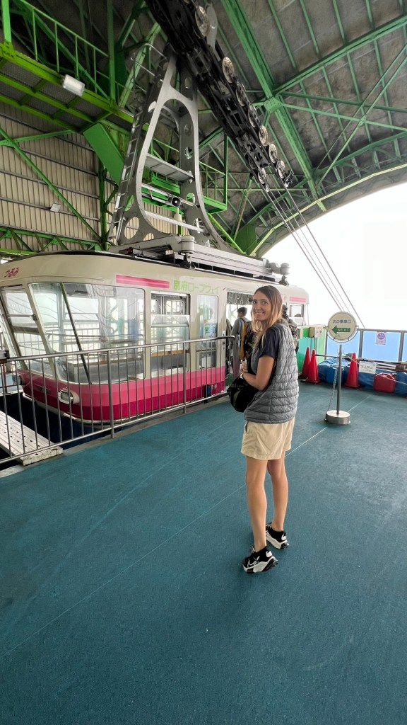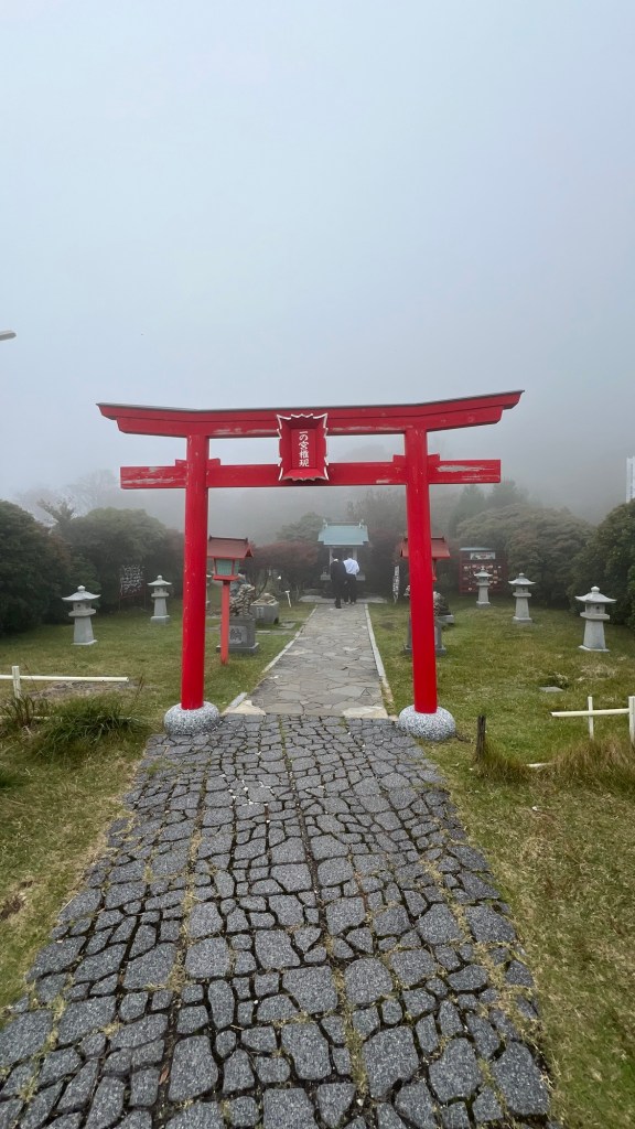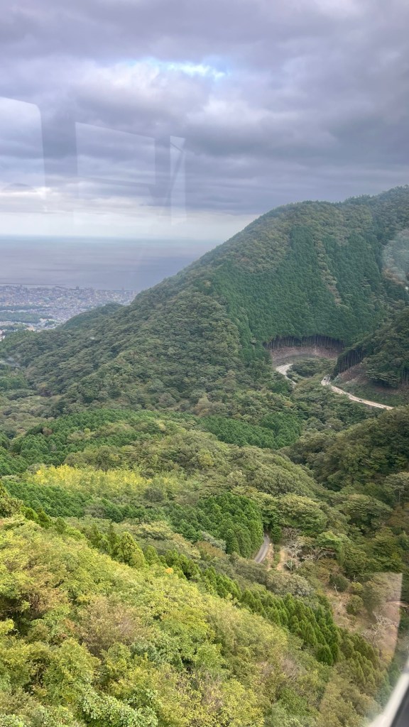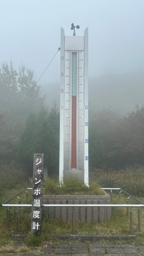 Whilst the views of Beppu Bay were visible at first, as we climbed ever higher, mist started to descend and visibility proved very challenging. We could see about 20m in front of us, so after taking in the initial sights we made a quick turn around and returned to the cable car station.
