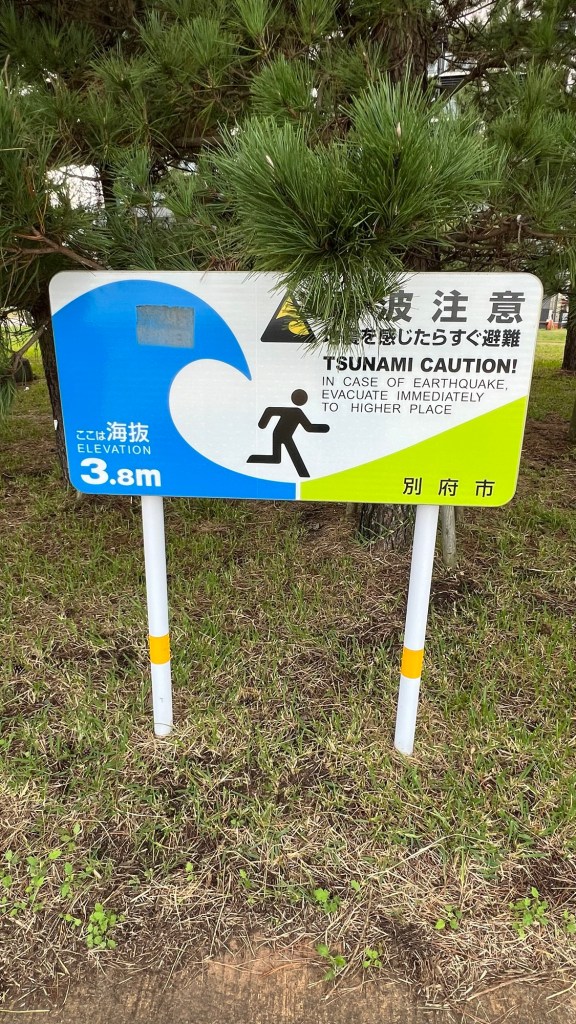 After picking up some sushi and other goodies, we walked back to our Onsen via the waterfront. We came across a tsunami warning sign, which highlighted to us the clear and present threat of earthquakes and tidal waves that have hit Japan over the past few years.