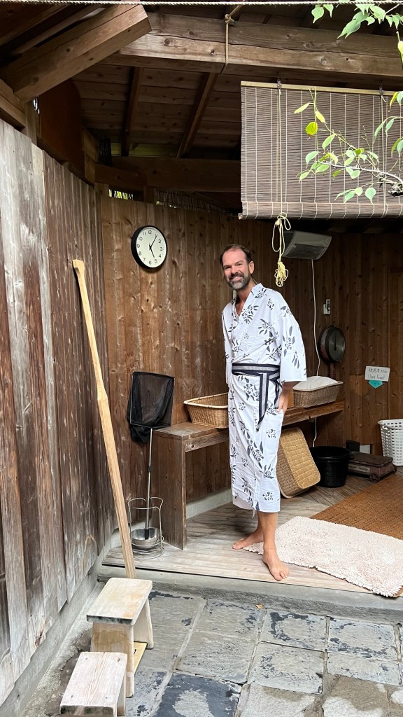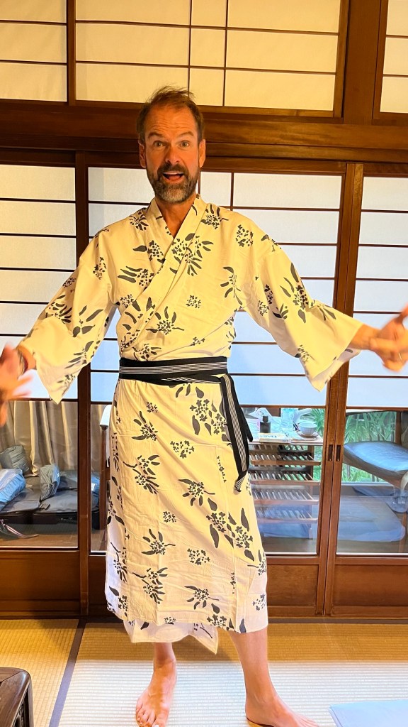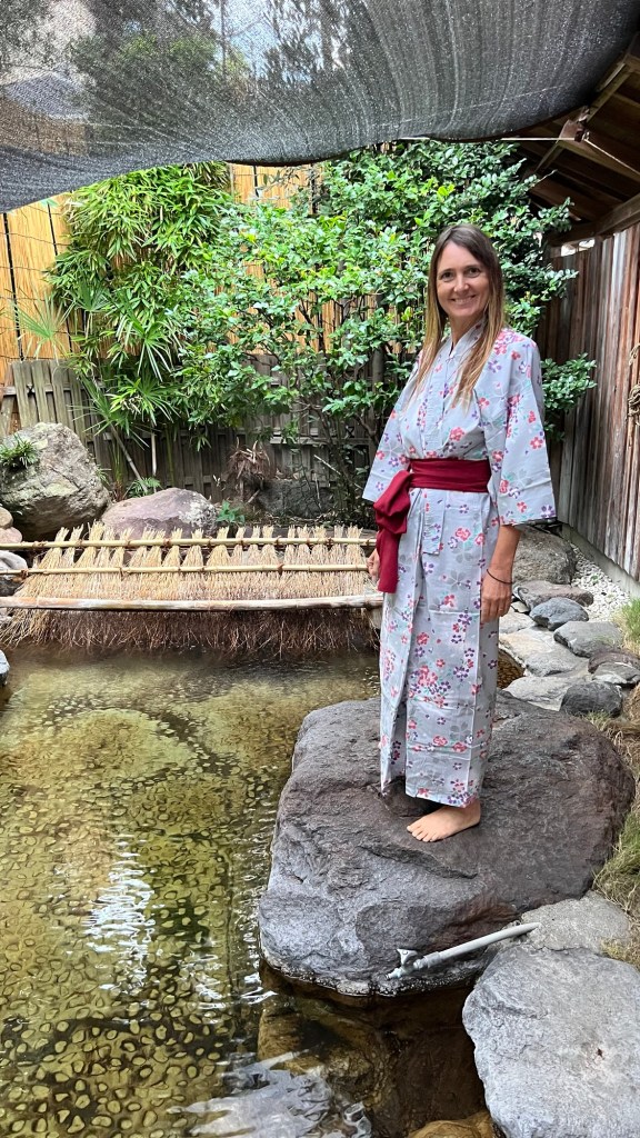 Once back at the onsen it was time for another dip in the hot springs, which called for wearing a new kimono for us to both wear.