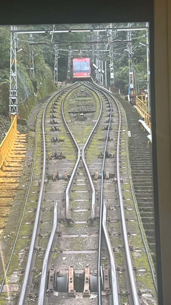 After coming to the end of this line, we changed to another train for a further 45mins, before finally transferring to a funicular for a 15min ride to the summit of Mount Koya.