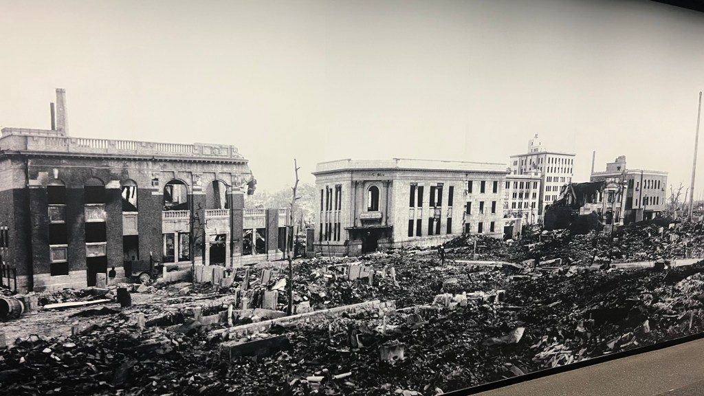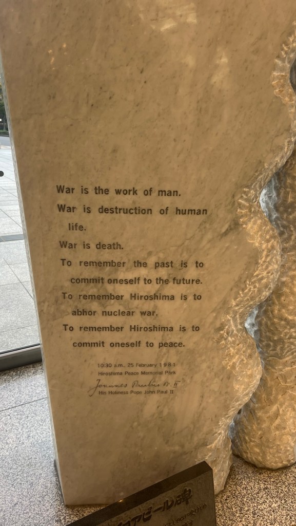 Nearby we then passed the Children’s Peace Monument statue, inspired by Sadako Sasaki and her thousand cranes, a beautiful tribute to the child victims of the bomb.