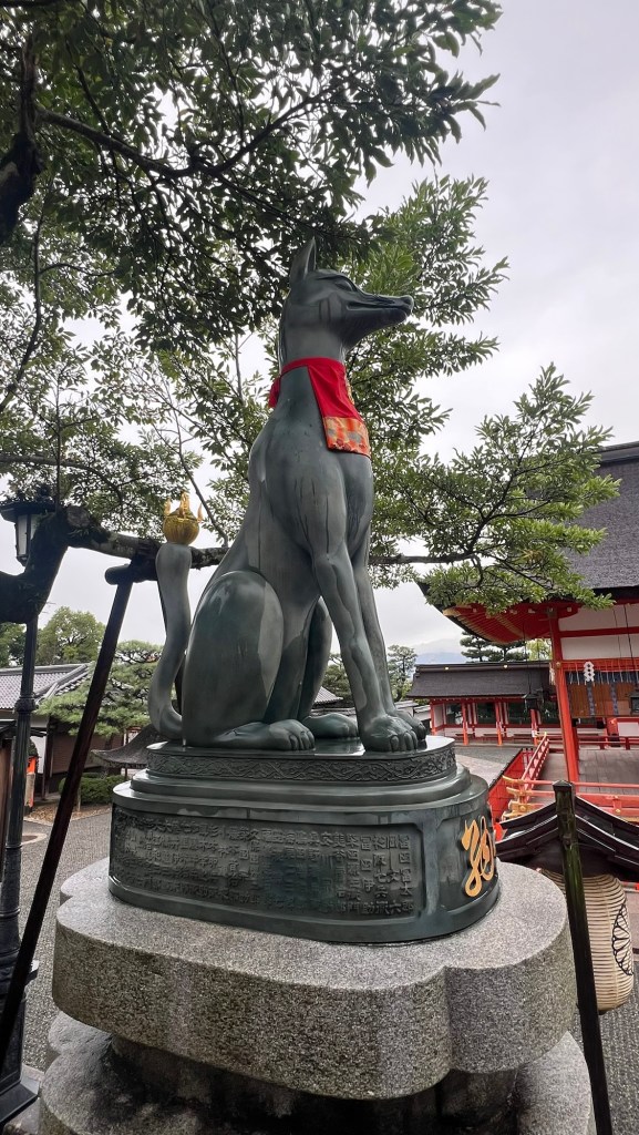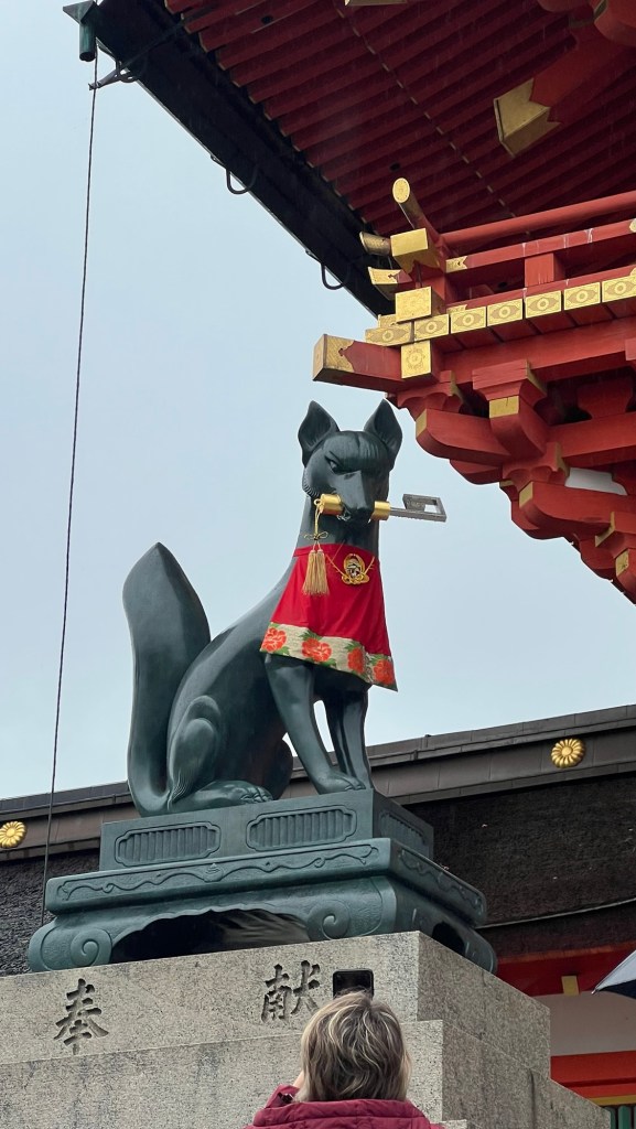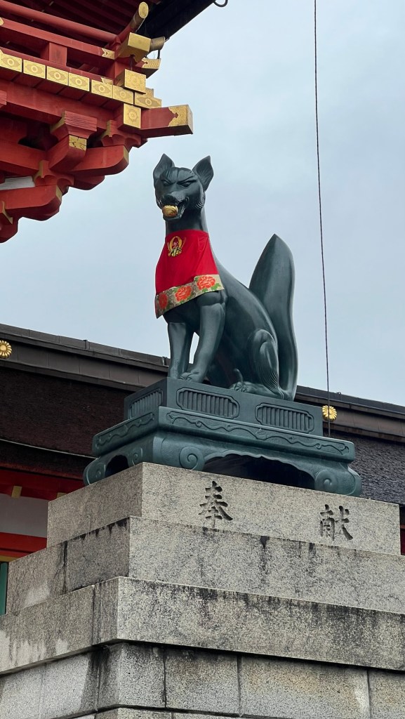 The temples around the base of Mount Inari have foxes adorned in red capes protecting those who enter.