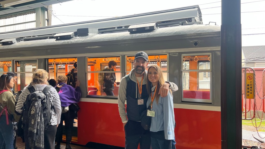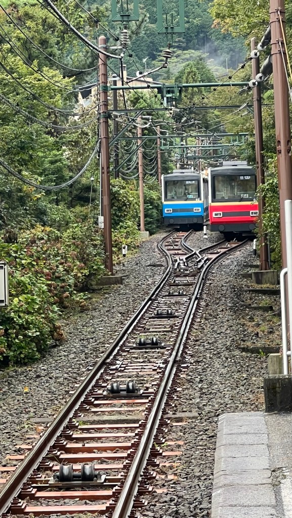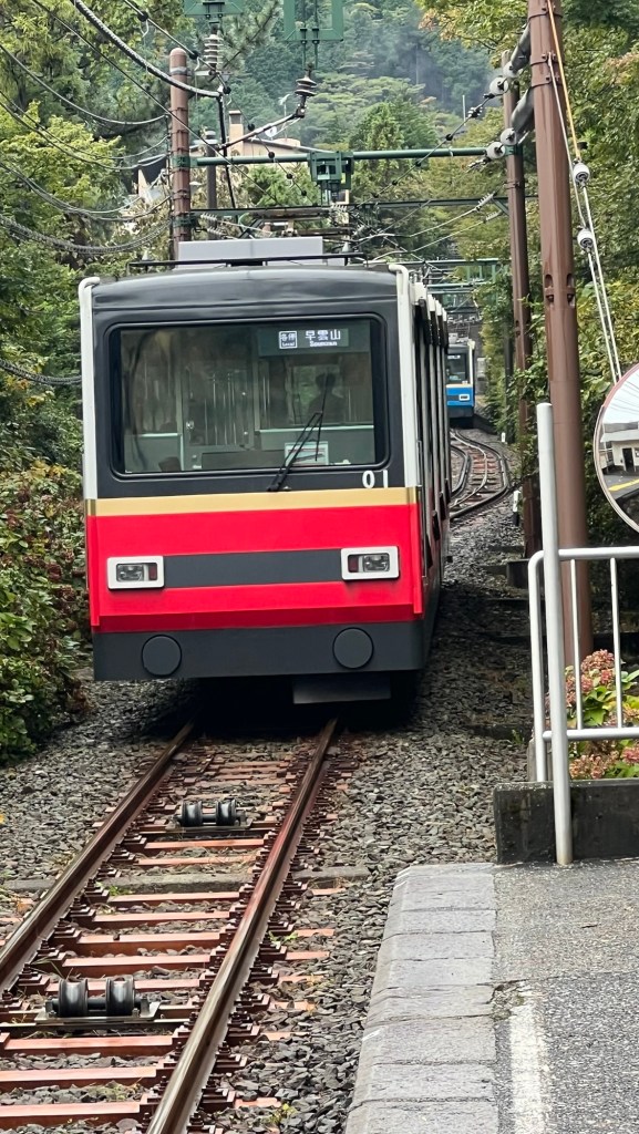 After the funicular we picked up the ‘romance’ train from Hakone direct to Shinjuku. The name comes from romance seats, two-person seats without separating armrests.