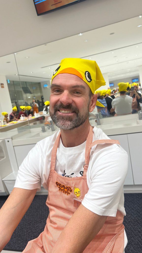 After spending a very enjoyable 3hrs at the cup noodle museum (I know it doesn’t seem possible but it just hooks you in), we made our way back to the hotel with our made ramens, some cup noodles and new yellow cooking headwear.