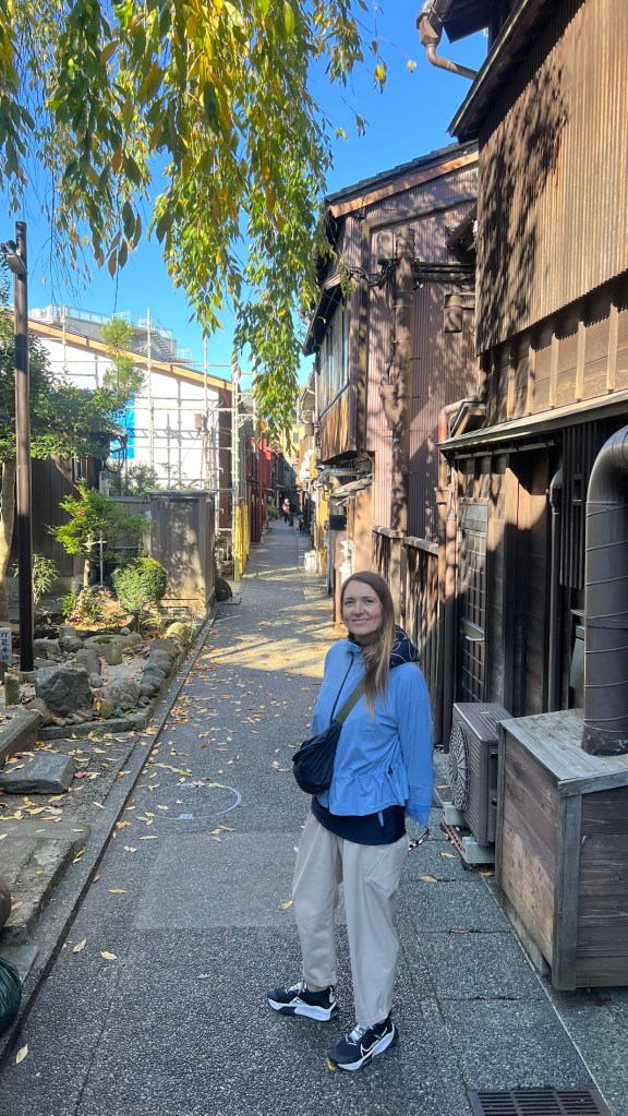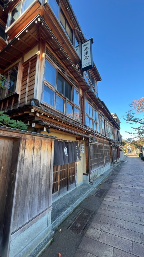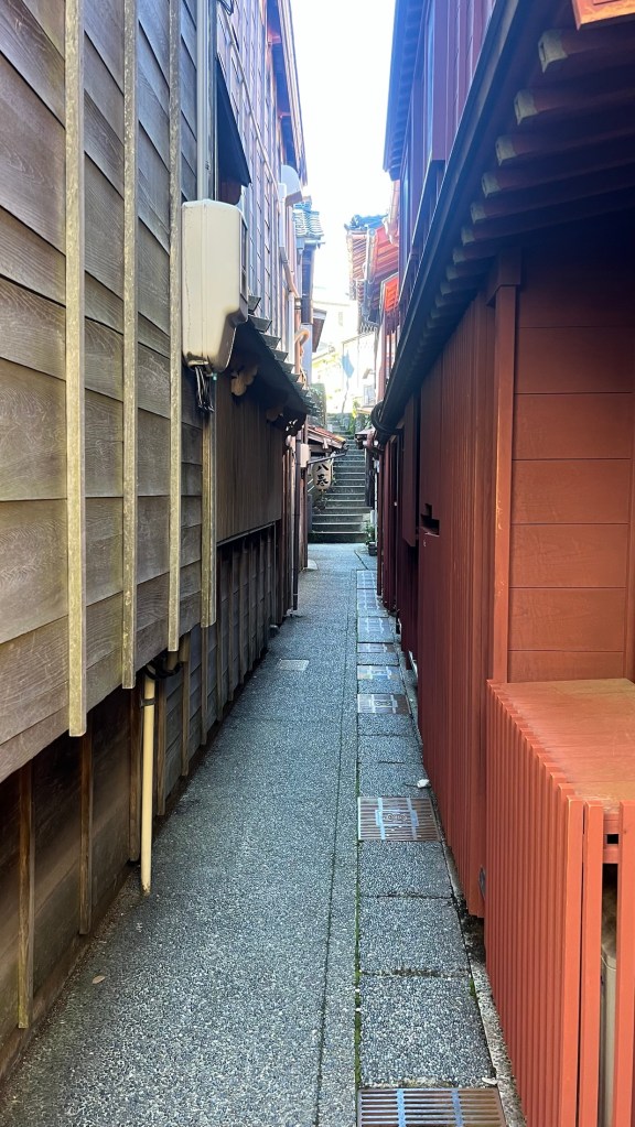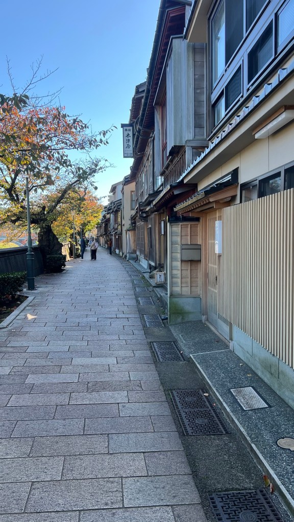 This area sits alongside the river, offering a quieter more atmospheric experience of old Kanazawa with its narrow streets.