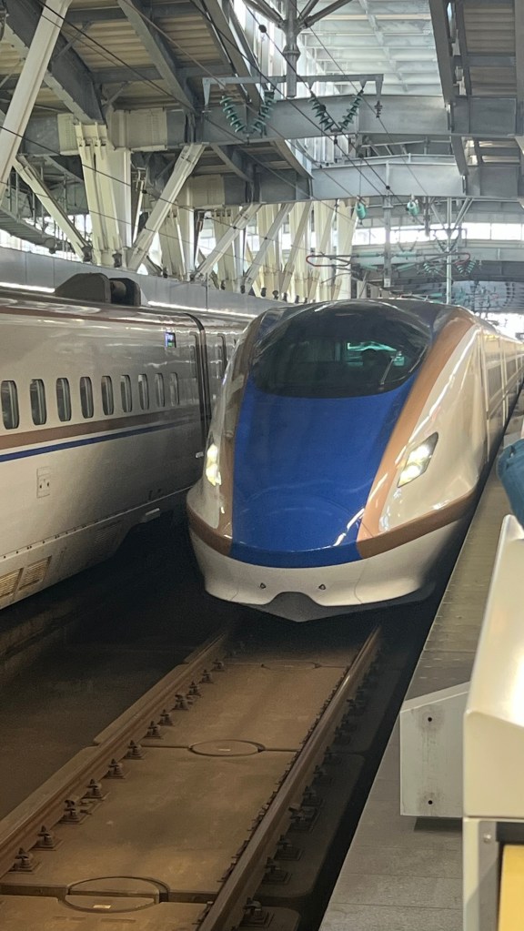 We headed early to the station for our last Shinkansen bullet train at 9.07am. (Precise as ever the Japanese, and we left bang on seven minutes past 9am!).