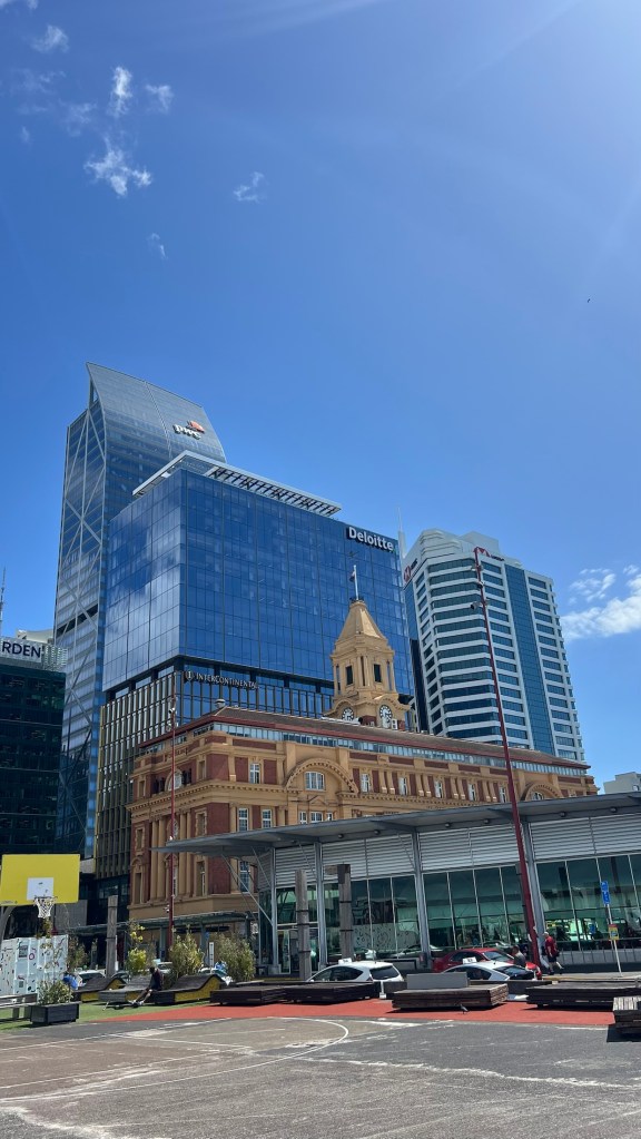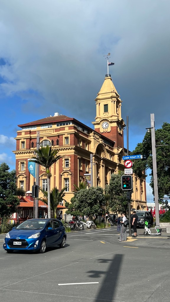 Leaving the park, we dropped off at a nearby Woolworths for supplies before visiting Victoria Park and passing the Victorian styled Auckland Ferry Building.