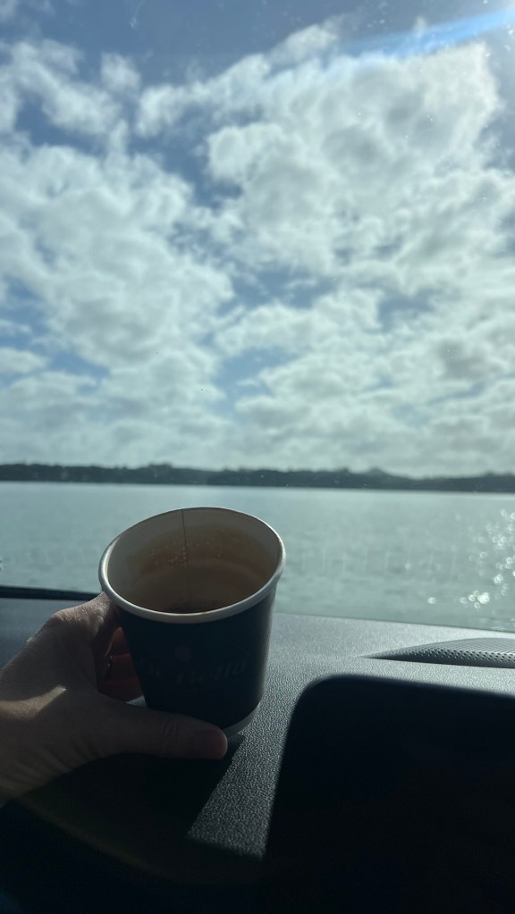After leaving Paihia around 8.30am we stopped a couple miles south for a breakfast coffee stop to enjoy the last views out over the Bay of Islands.