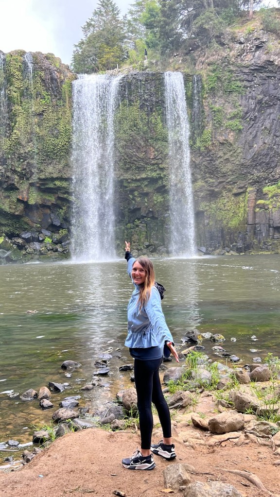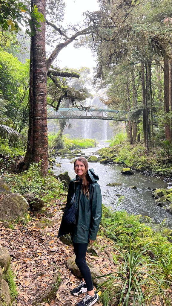 There was a gravel walkway through the native bush, that led down to the falls and alongside the river. Despite the rain we made our way down the path and got some great photos of the waterfalls from various spots.