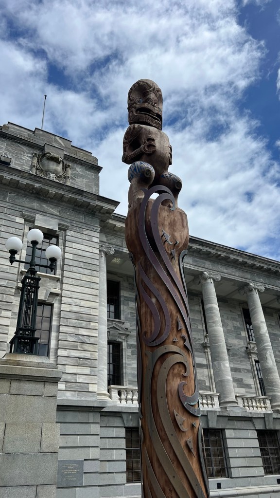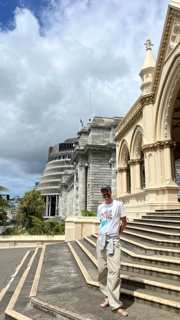 We walked along the line of the three buildings, all constructed in different periods, with individual themes, but somehow they sit well together and complement each other. Perhaps it’s a metaphor for NZ progression through the last 150yrs as it’s moved from being a British colony to an independent country with its own culture and traditions.
