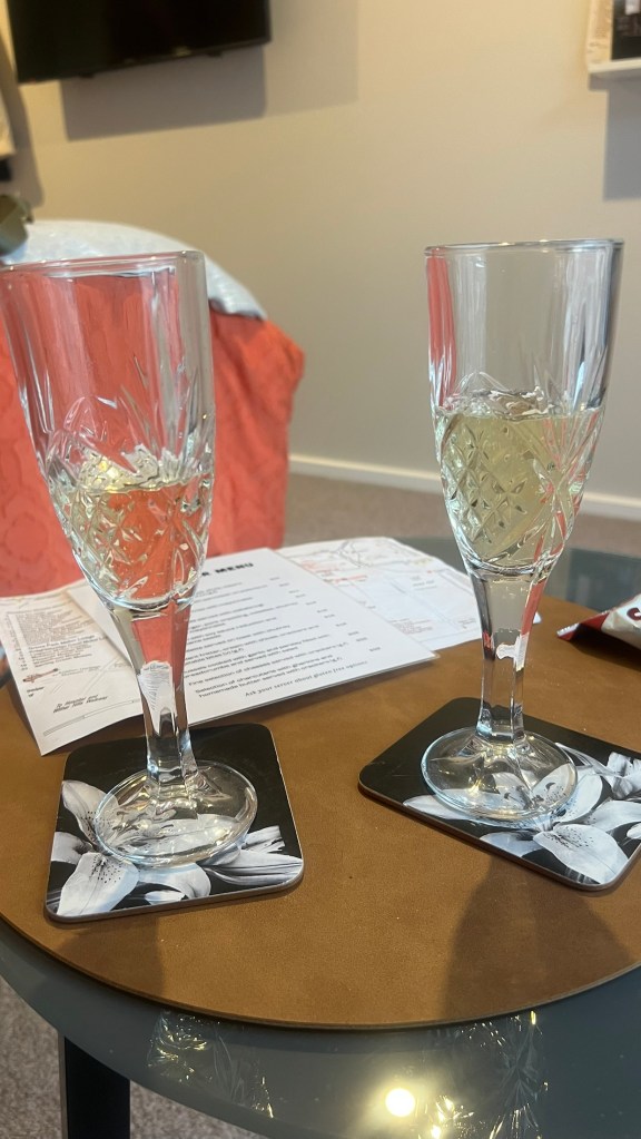 With a couple of complimentary drinks waiting for us in the fridge of our room, we tucked into a sparking white wine, before walking into town for a dinner at a local curry house.
