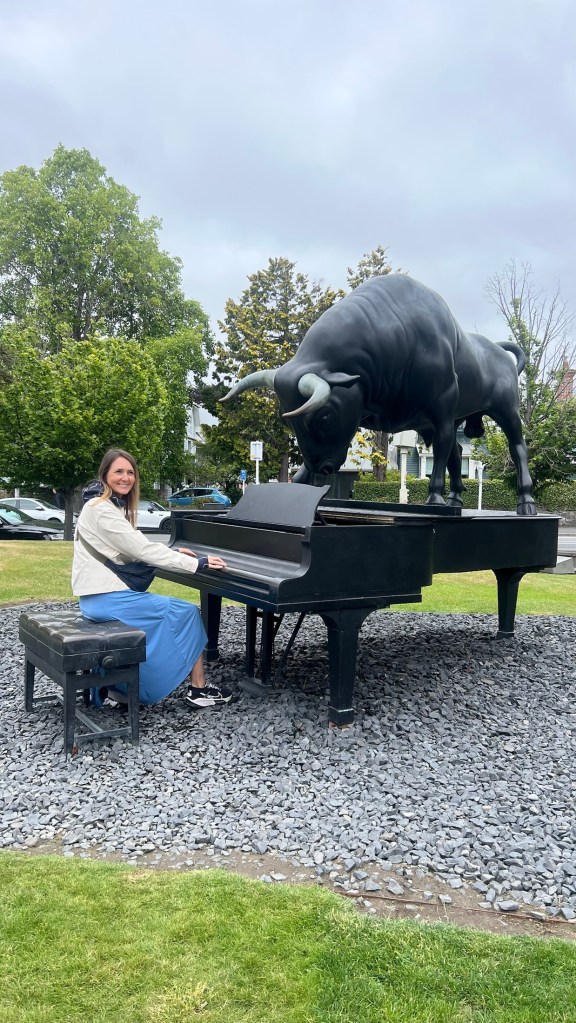 Even before we entered the gallery it was full of humour, surprise and heart. Starting with the Bull on the Piano, an unusual play on the finance cities around the world.