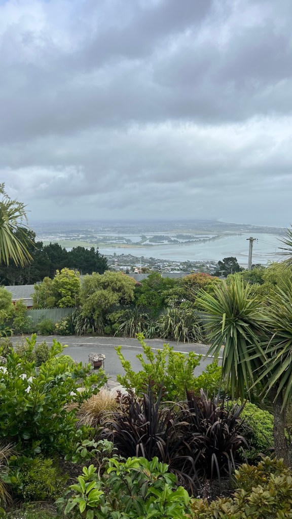 Before leaving Christchurch this morning, we enjoyed another lovely breakfast with views down over Mount Pleasant to South New Brighton Bay.