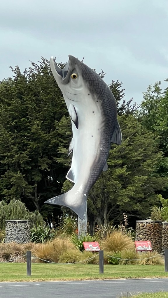 Once on the road we quickly found our way out of Christchurch and made our way to the outskirts of Timaru, before turning in land past the famous pie shop and fish in Fairlie and on to Lake Tekapo.