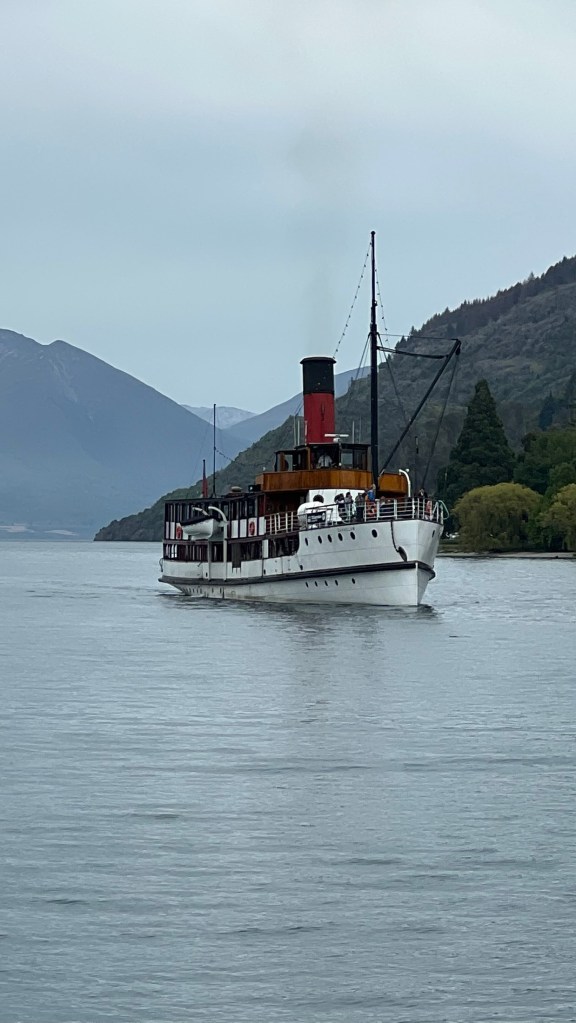 Before boarding our boat we had a look next door at a heritage steamship, the twin screw coal fired steamer TSS Earnslaw that also operates on the lake, but at twice the price to our transport!