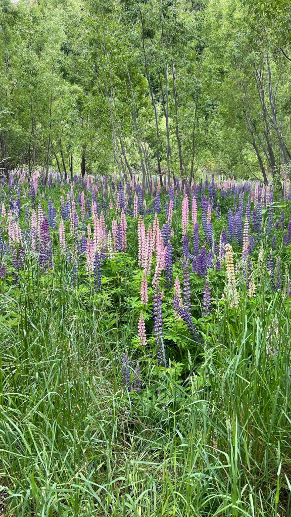 The walk along the river was beautiful, helped by the wonderful scenery and colourful lupins on each side of the stream.