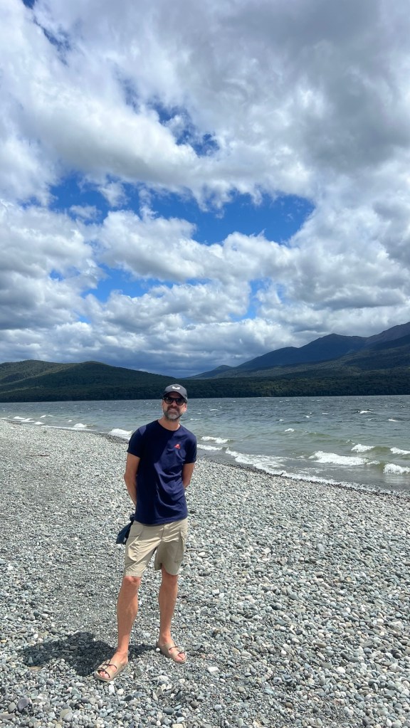 After another hour or so’s drive we arrived in Te Anau around 1.30pm and went straight out for a walk around a very blustery Lake Te Anau. It’s the gateway to the fiords and we came across lots of other people who are heading to Milford Sound tomorrow like us.