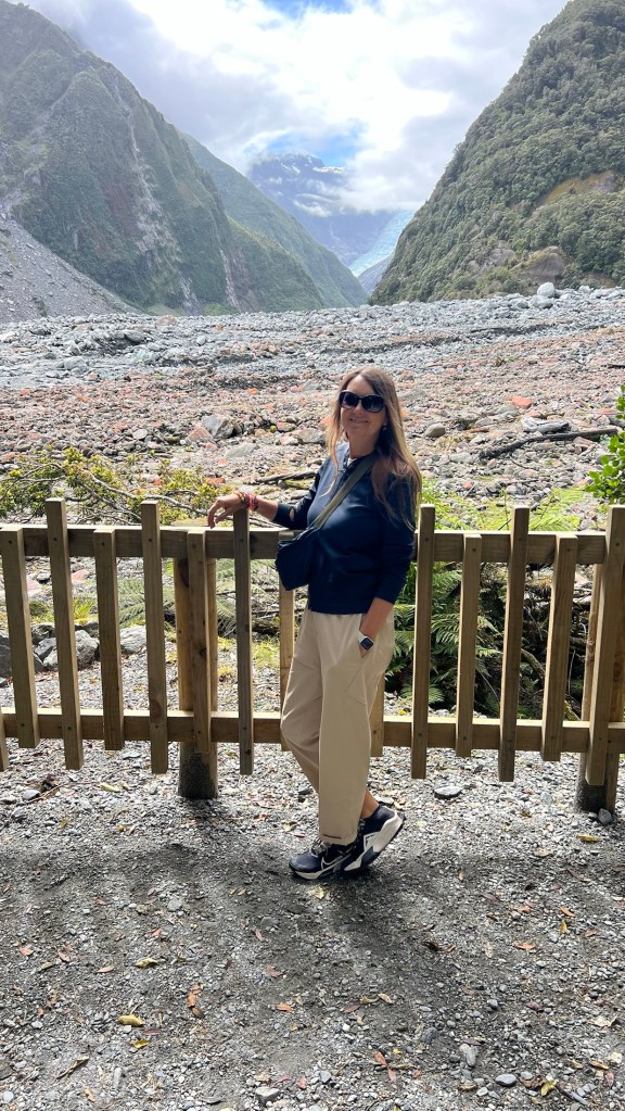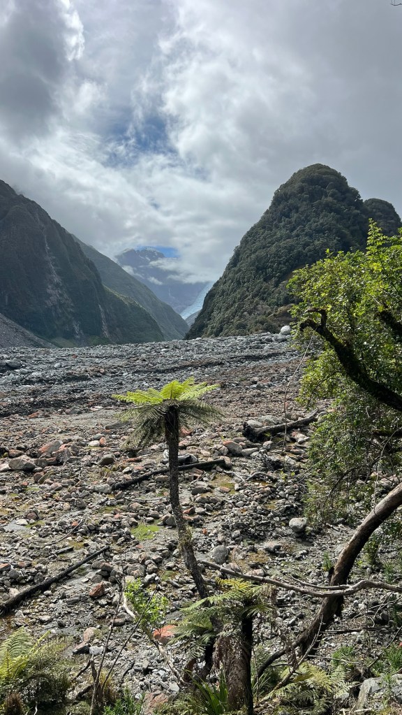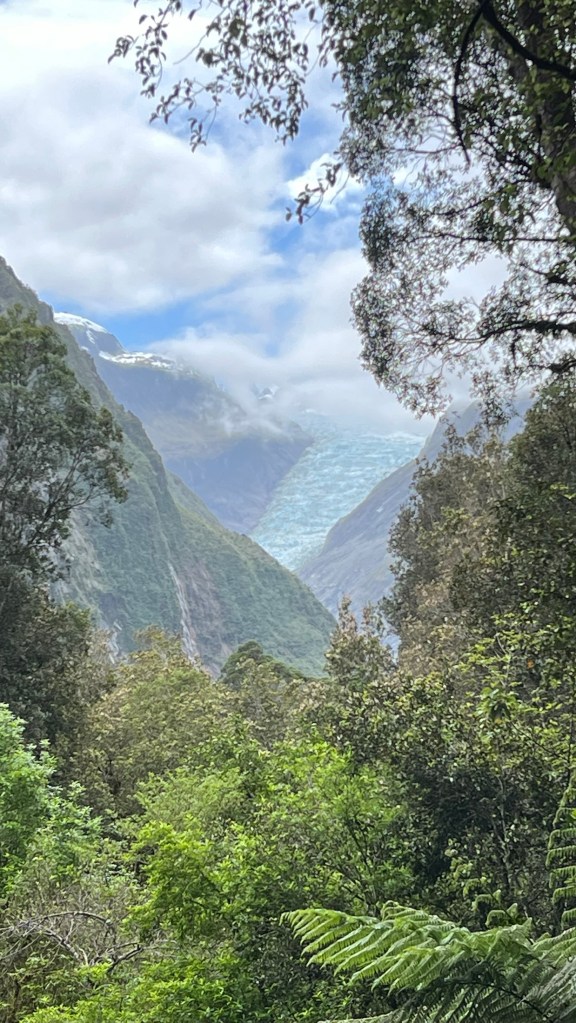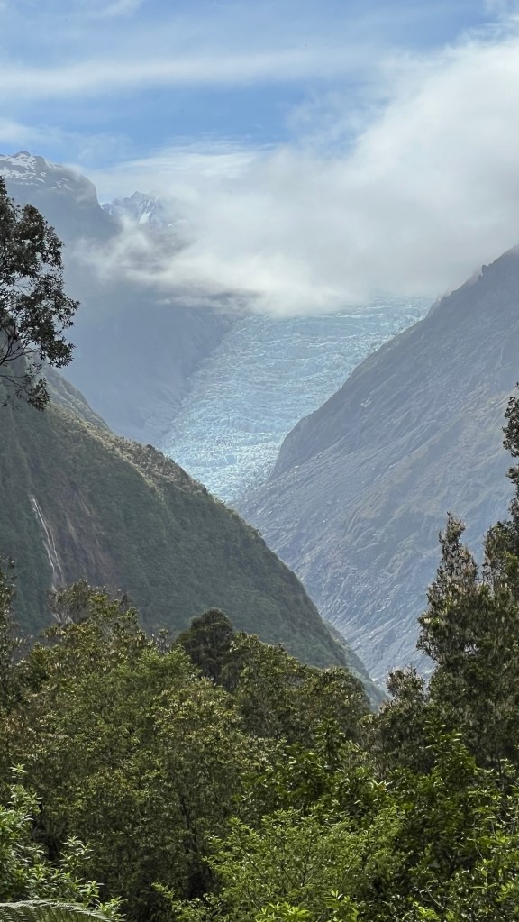 After a round walk of 90minutes/6km we got back in our car and drove the 20km up the highway to Franz Josef glacier, a place we had visited just over 20yrs ago and where we had vivid memories of physically climbing on to the glacier. Not so this time.