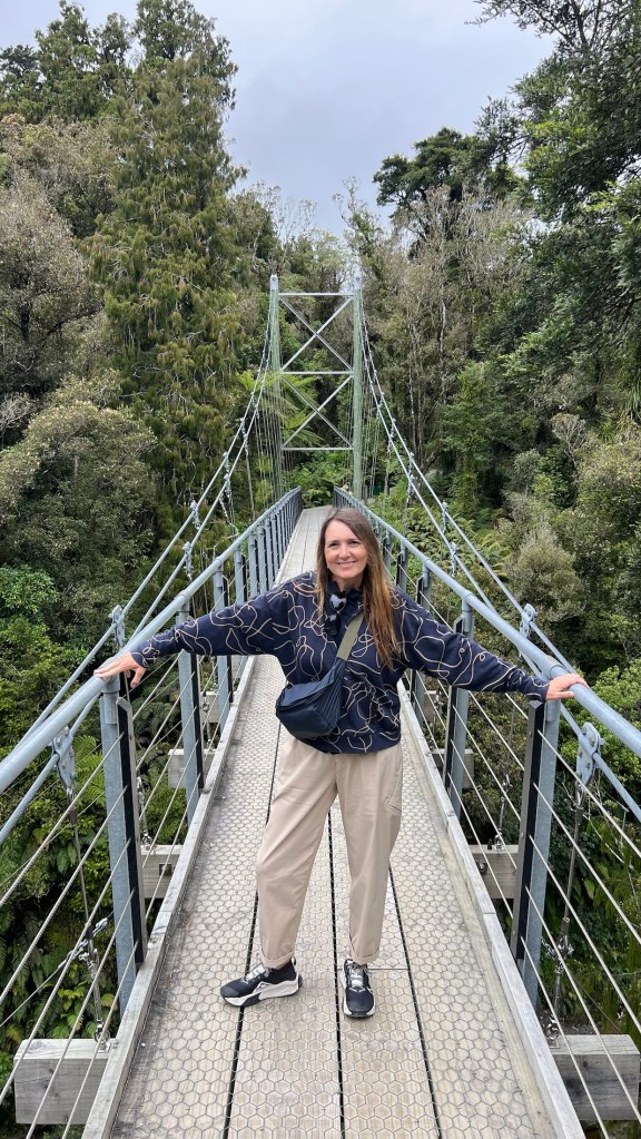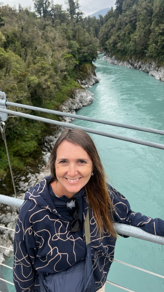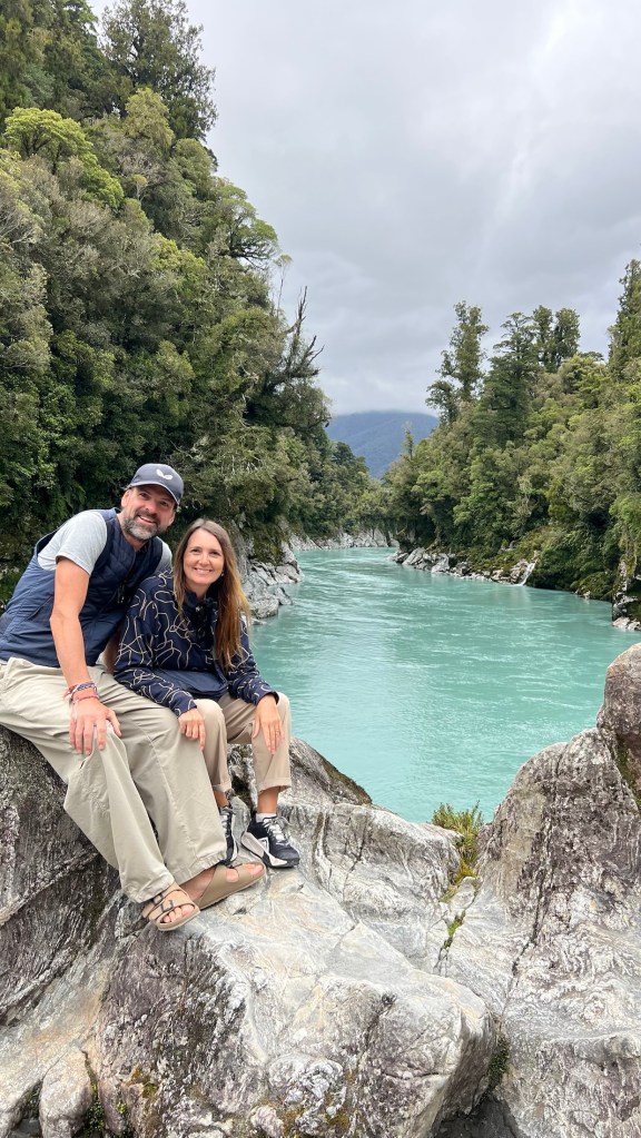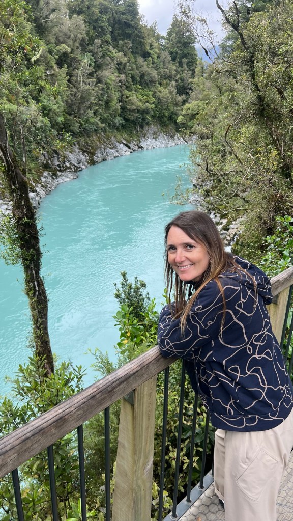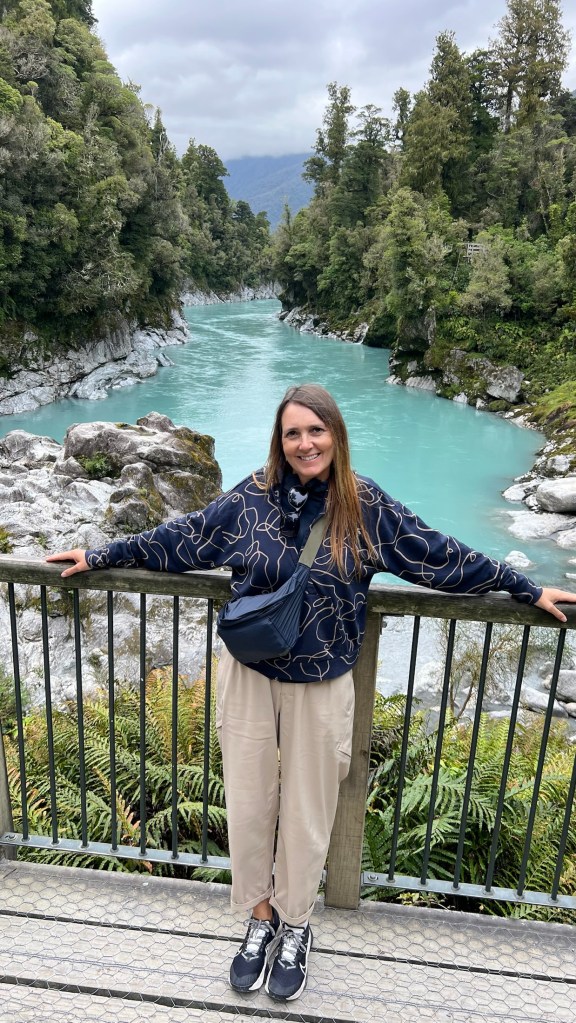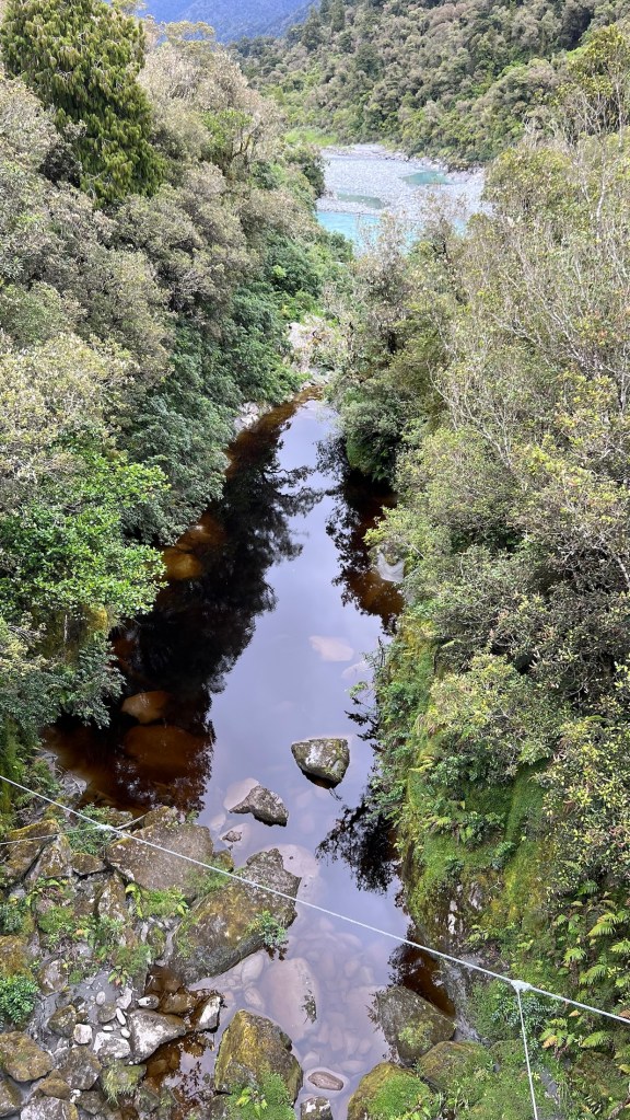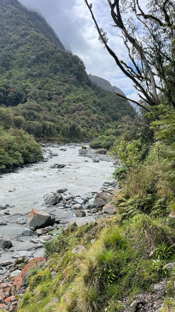 Our short walk took us to a lookout where stunning upstream views of the glacial river are surrounded by beautiful native rimu forests.