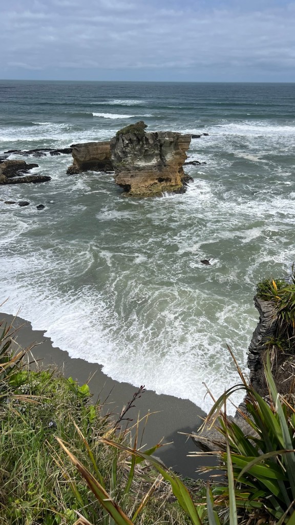 One of the viewing stops looked out to Motukiekie Rocks and the adjoining beach. It’s one of the lesser-known beaches in NZ, and was both wild & beautiful, with its wonderful arches and cliffs.