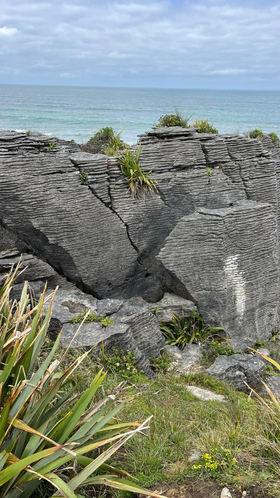 After passing through the town of Greymouth we made our way to the infamous Pancake rocks and blowholes, just south of Punakaiki. Rising from the sea at Dolomite Point, the Pancake Rocks are part of a heavily eroded limestone area where the sea bursts through underwater channels and escapes via vertical blowholes.