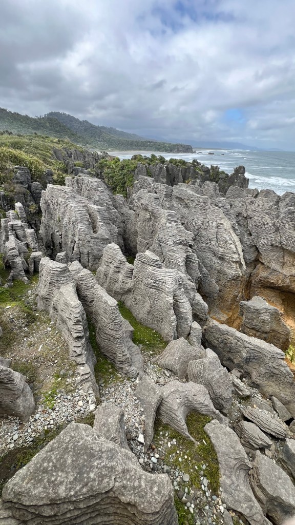 We left the morning clouds of Hokitika and very quickly were back on the coast road and heading north to the sunshine of Punakaiki.