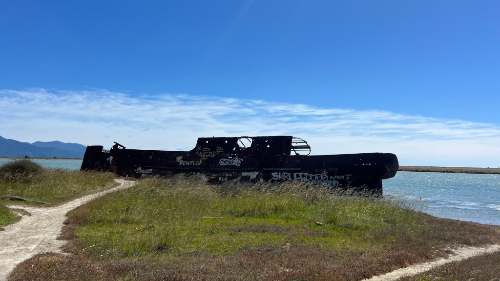 The walk followed the lagoon shoreline with good bird watching along to the rusting remains of the Waverley ship.