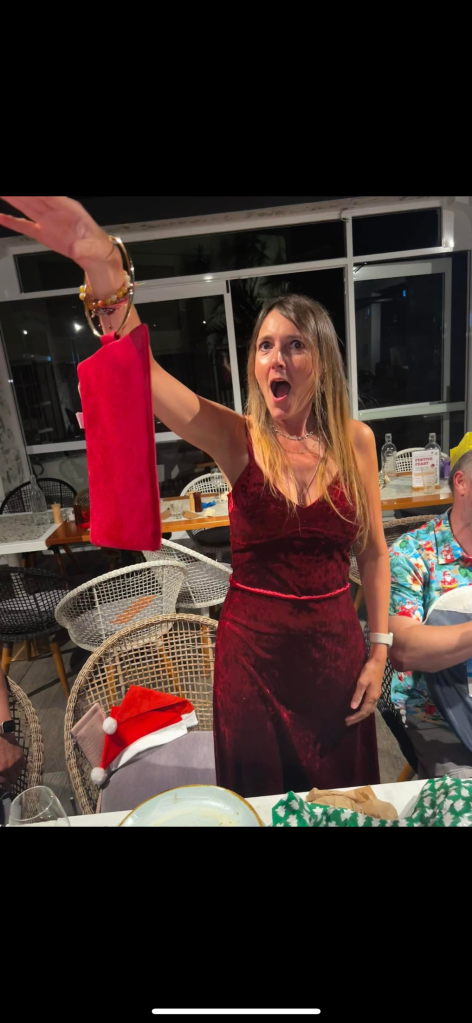 We had a really fun night catching up with friends who we hadn’t seen since leaving Sydney on the 9th January. So good to see Jamie, Neil, Kate, Gary, Tracy & Caroline + kids – big thanks to T&C for organising the evening and for dressing the table and organising the secret santa gifting!
