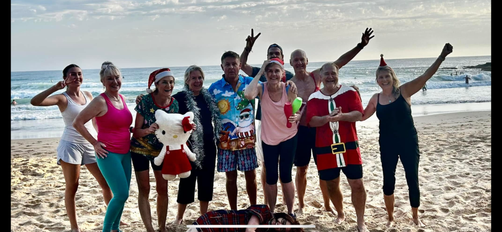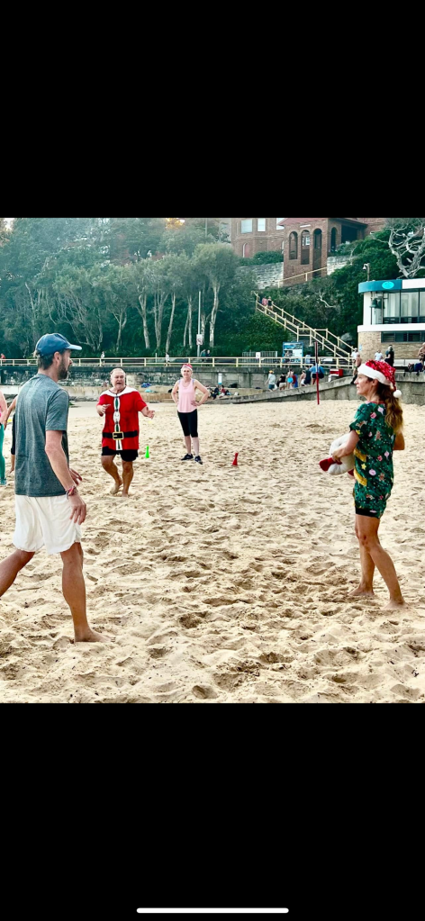Andy was up for the Xmas ‘boot camp’ down on the beach at 6am, with a few exercises before a game of teddy bear rugby. This involved a teddy bear being thrown around with goals at each end and lots of fun and laughter. And perhaps a little bit of cheating from some….