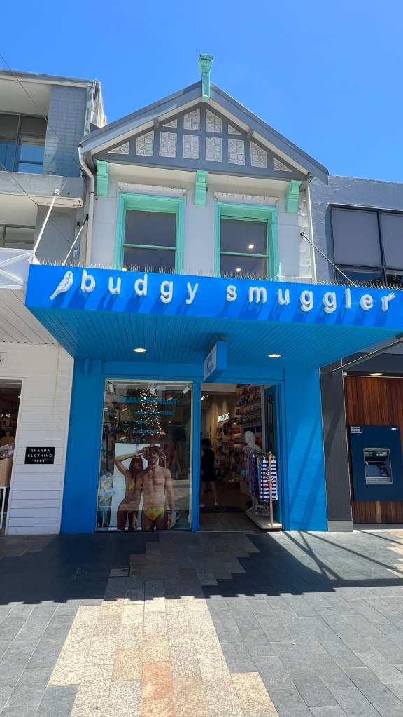 Our favourite store remains the budgy smuggler selling 1970’s styled tight swimming shorts for men.