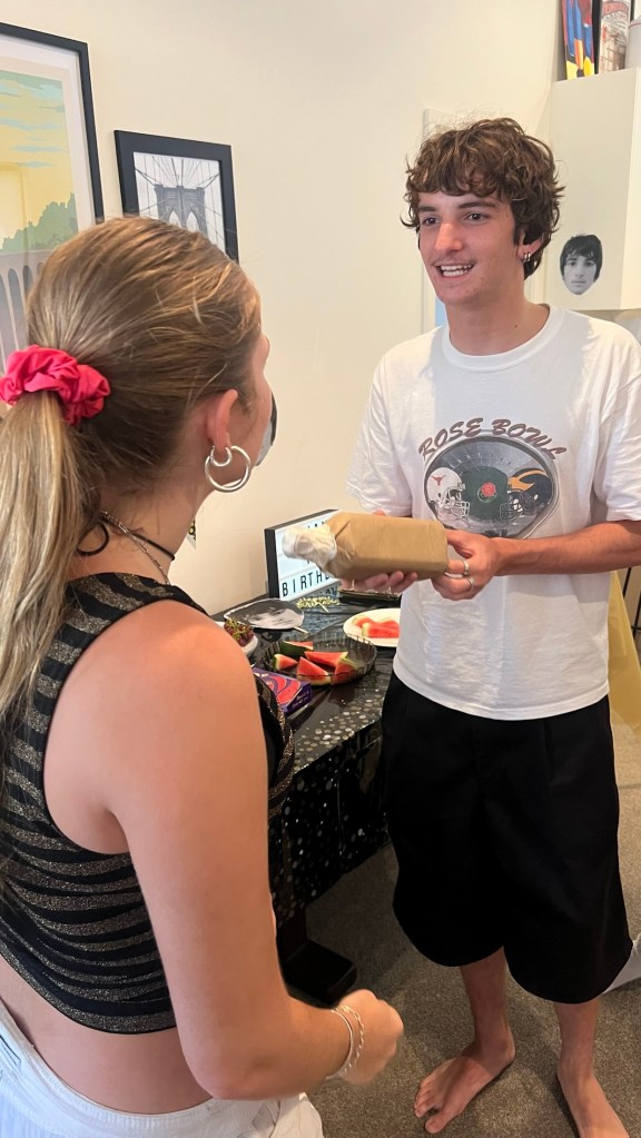 This was to be a surprise celebration, so we all waited in the apartment for Ethan’s return from work before catching him unawares when he came through the door. Thankfully he didn’t bolt and despite the obvious embarrassment took the whole surprise party thing in his stride and by the end almost looked like he was enjoying it a little…..