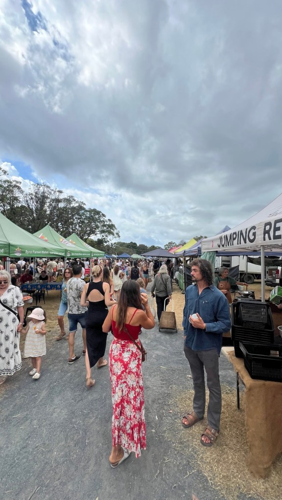 After the early morning excursions, we decided to take it a little more easy and visit the Bohemian Farmers Market in Byron. Without wishing to stereotype, there was a lot of laid back types selling high end sourdough bread and toxin free smoothies and every organic food type that has ever been grown in Australia. Added to this there was a local, singing classic folk and country music to an audience of barefoot onlookers.