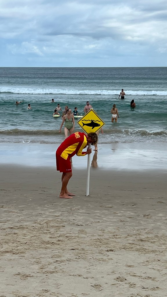 Keen to return to the joys of the beach, we wandered out on to the sands only to be told there had been a shark sighting meaning no swimming. Fortunately no soon had the sign gone up, then we were told the shark had ‘gone’ and we were free to return to the ocean….