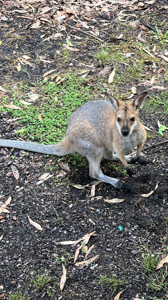 Before we departed Michelle was saying her goodbyes to Rocket and Lightning the wallabies named by Paul & Naomi.