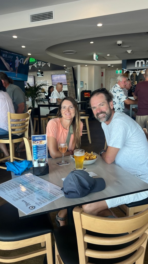 Late afternoon we went down to the Pipes beach which stretches out for a couple of miles in either direction. Whilst we planned to go straight to the supermarket for dinner ingredients, we found ourselves distracted by Maroochy Surf Club where we stopped off for a drink with chips and aioli dip.