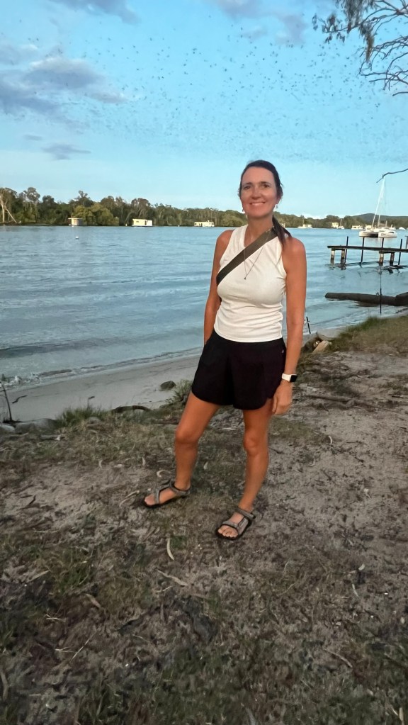 Michelle stopped for a photo on the waterfront and it was only afterwards that we noticed just how many bats were flying over us. It felt like an invasion, such was the scale and number.