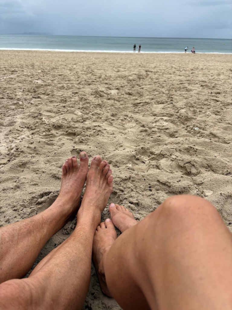 This proved to be the best part of the day, so much so people were arriving at 6pm to hit the beach for the last hour before dark. We love walking along beaches and this is one of our favourites – we been fortunate to do it a few times before, both with our daughter Amelia and also friends Paul & Naomi so it brings happy memories to the fore.