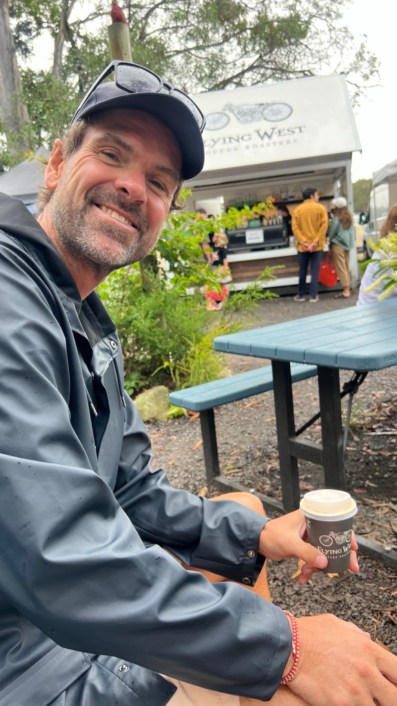 The Aussie market offer, included legs of lamb and rump steaks, but given our vegetarian leaning, we gave them a wide berth and instead settled on a coffee from Flying West, the Coffee Roasters.