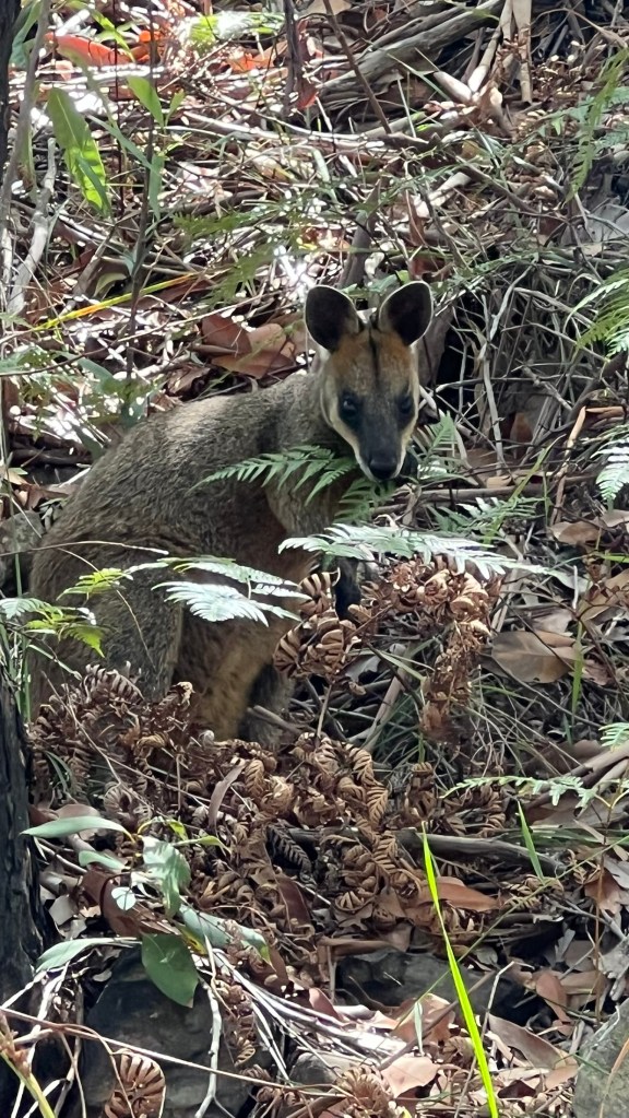 As we climbed down the hill we came across some local wildlife, with a wallaby munching in the undergrowth.
