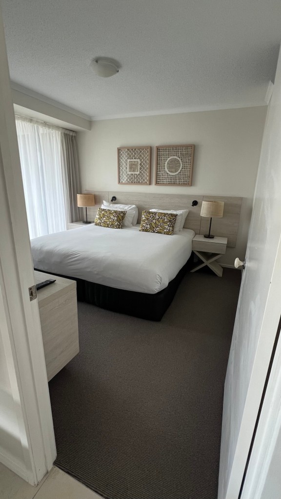 Arriving into Mooloolaba we moved into our latest serviced apartment, a huge set up with a large living room and balcony that looks out to the coast.
