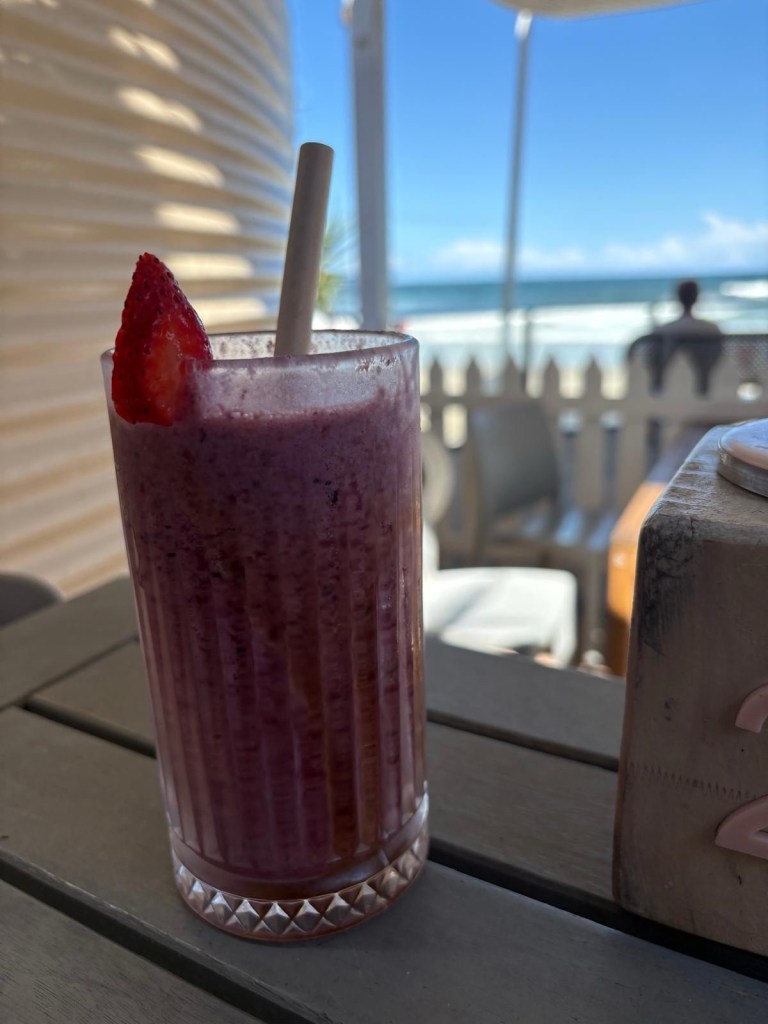 As we walked our way along the Esplanade, in mid afternoon we stopped for a smoothie at Kings Beach Bar and caught up with more reading & relaxing.