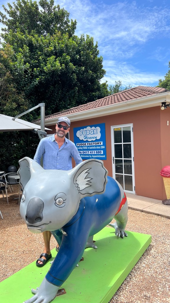 From there we found a fudge store and a large koala….we aren’t sure of the significance of either but it seemed to be sufficient to get a reasonable amount of tourists shopping!!