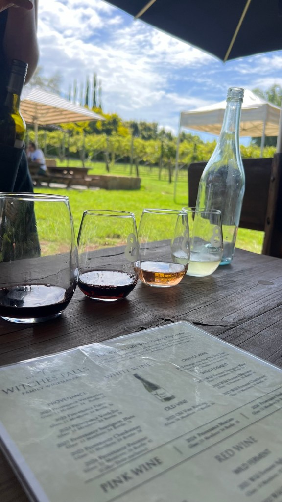 From one experience to another, we drove a mere 2 miles onto Witches Falls Winery, for a spot of ‘tastings’.