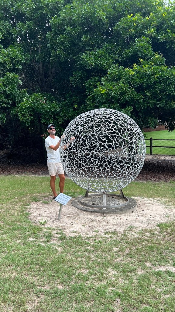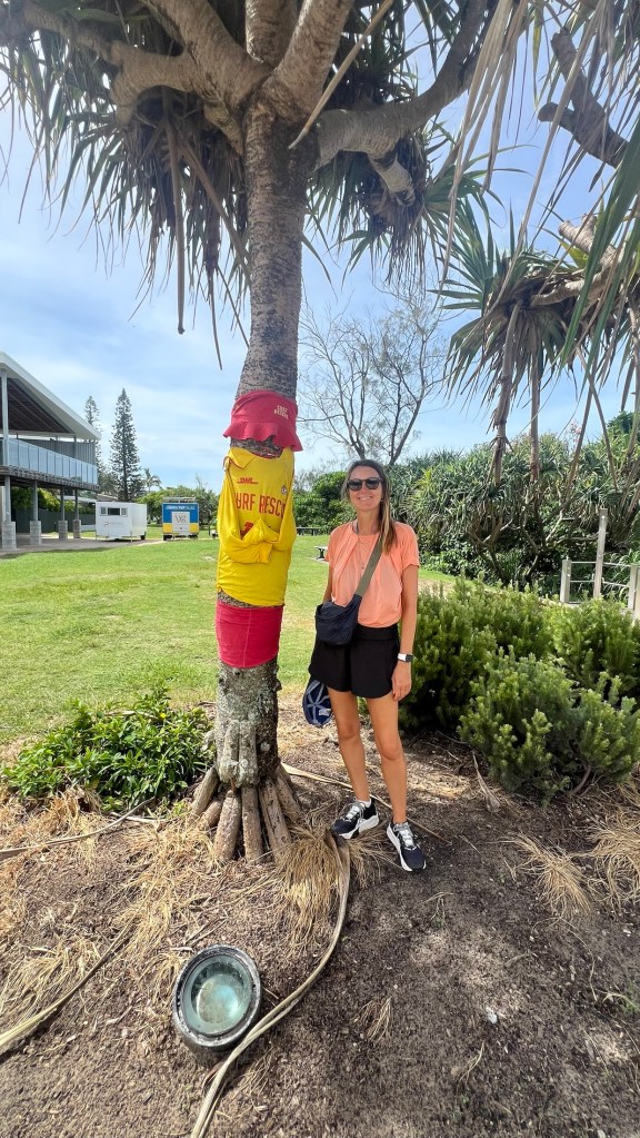 With time on our hands we meandered down to the beach, passing the lifesaver dressed palm trees….!!