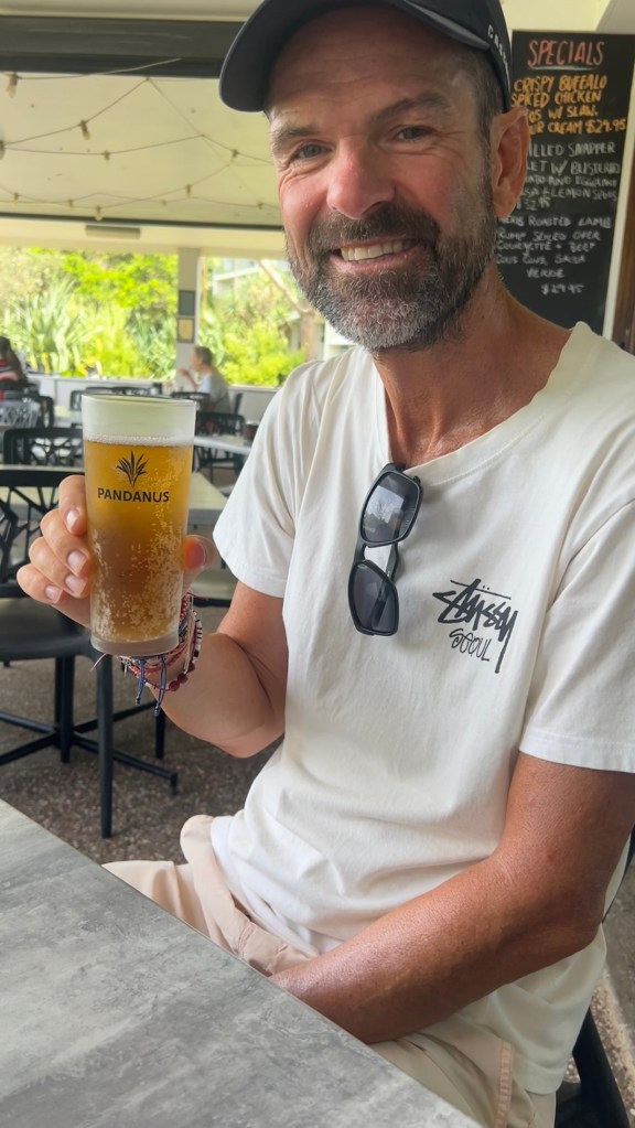 After settling into the cafe at the surf club, Andy treated himself to a low carb Blonde beer and Michelle her customary flat-white.