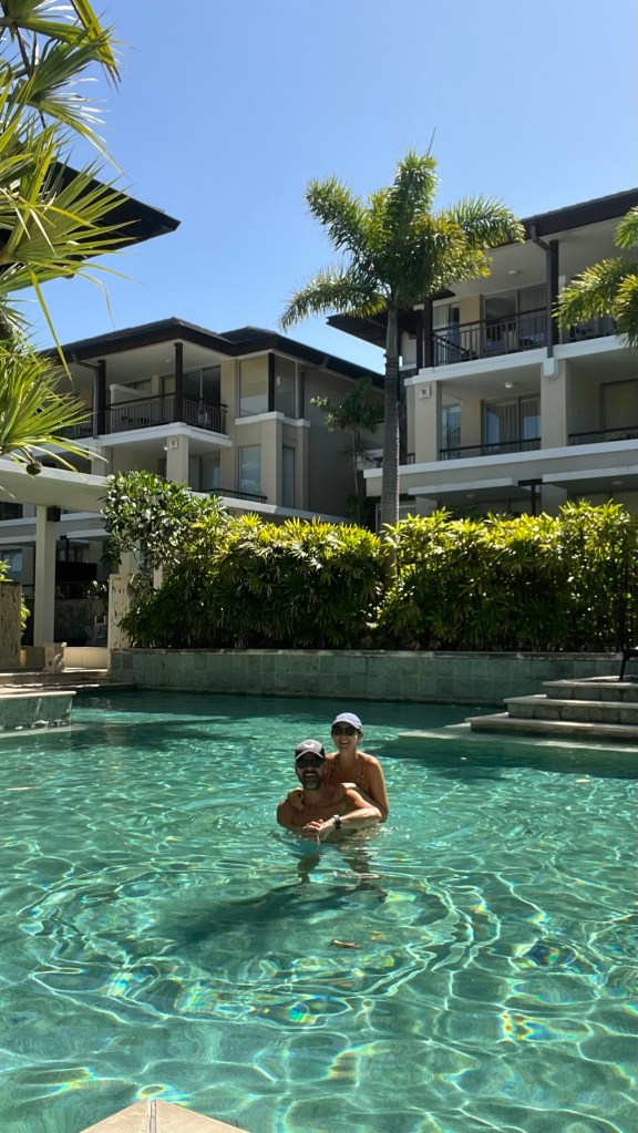 Andy completed his 10km run to Cabarita Beach and after a healthy breakfast on our apartment patio, we went straight down to the pool to max out in the February heat & sun.