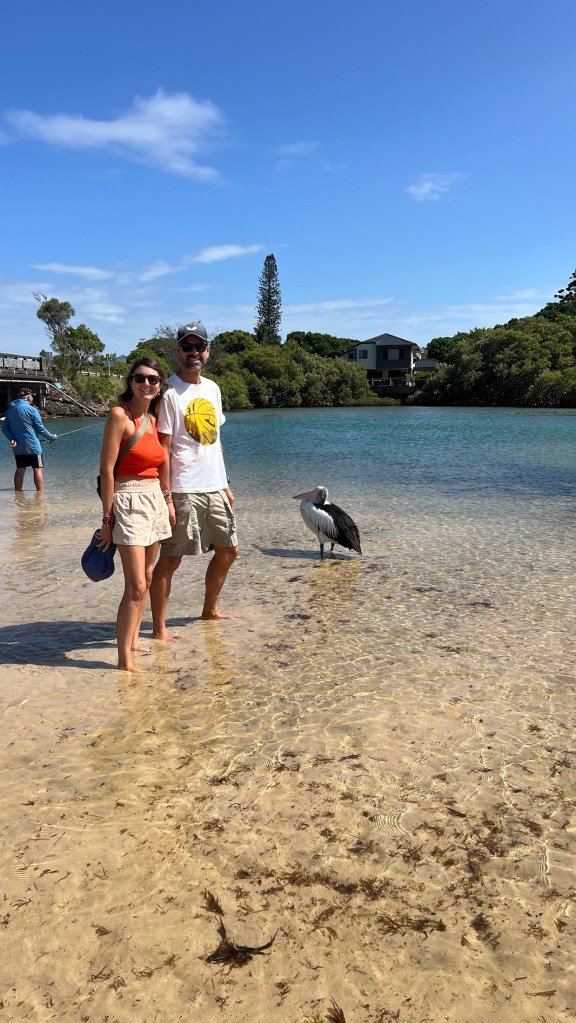 We spent an enjoyable hour walking along the Cudgera Creek where we met a friendly pelican who was hanging around looking for fish handouts.