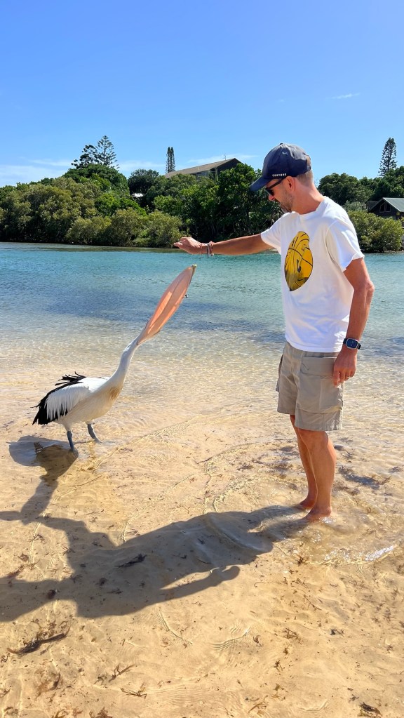 Andy was given some fish guts by a local fishermen and fed a very ‘snappy’ pelican who gobbled up the snack in a second.