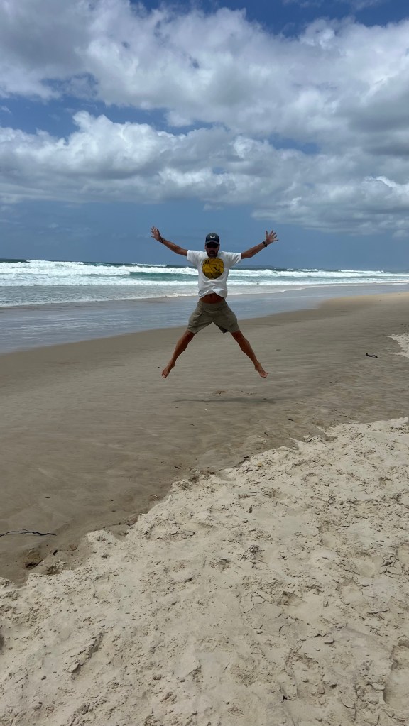 We then found our way to Brunswick Heads Main beach and Andy performed his star jump for old times sake!